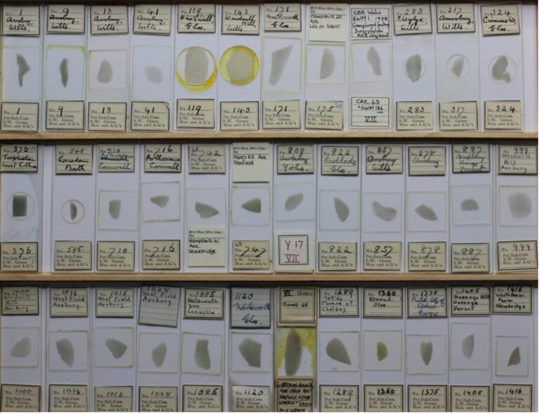The axe-heads are returned to their museum or individual owners, but the collection of thin-sections, currently at well over 2,000 samples, are kept in trust on behalf of the museum community in the south west (currently in the care of the South West Heritage Trust in Taunton) for public reference. Thanks to a grant from Historic England, the catalogue can be viewed online at StoneAxes.org.uk.